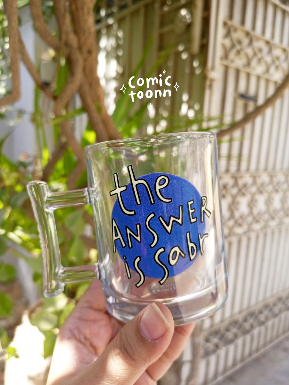 the Answer is Sabr Glass Mug – Blue
